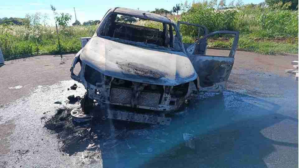 Toyota Hilux foi furtada e destruída por incêndio em Toledo, no Oeste do Paraná, na manhã desta q...