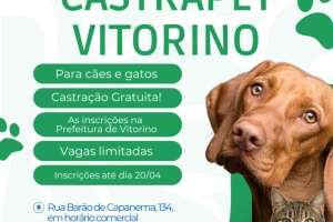 As inscrições para participar do programa estão sendo realizadas até o dia 20 de abril, presencialmente, na Prefeitura de Vitorino, rua Barão de Capanema, 134. As cirurgias serão gratuitas e, além da castração, os tutores recebem medicação para o pós-operatório e orientações para o bem-estar animal. Os procedimentos são realizados por equipes de veterinários que percorrem o Estado para atender aos cães e gatos, machos e fêmeas, da população de baixa renda, protetores e OSCs.