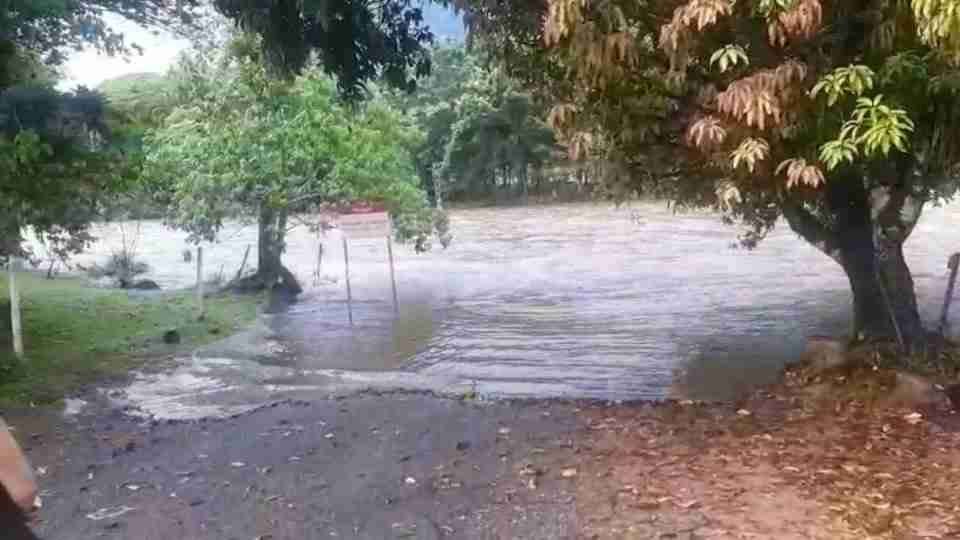 Uma família foi resgatada por policiais militares após ser surpreendida por uma cabeça d'água no rio São João, na localidade de Pedra Branca, zona rural de Guaratuba, no litoral do Paraná, na tarde desta quarta-feira (14).