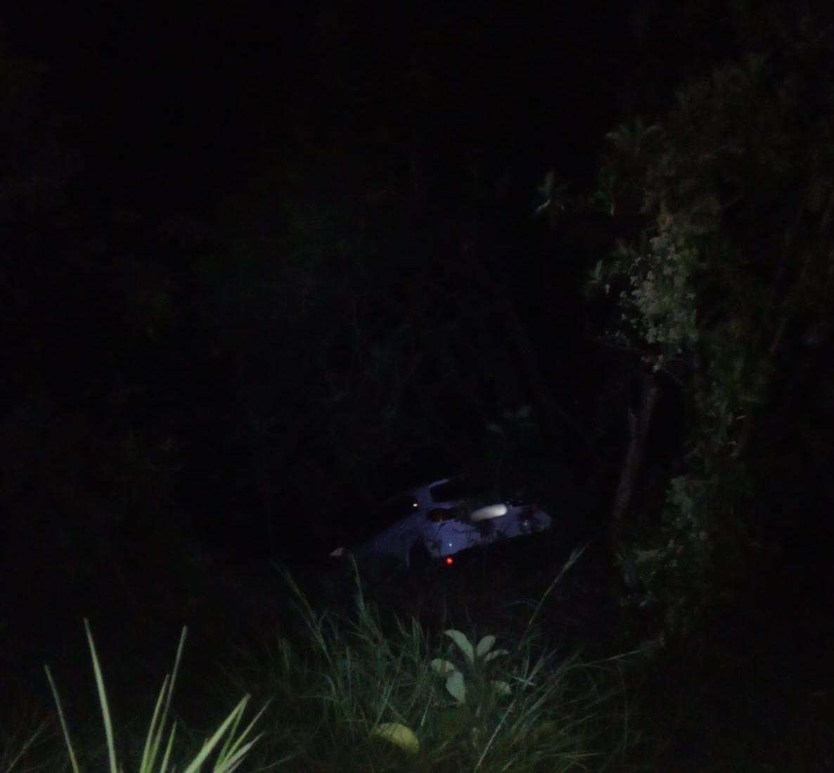 Para evitar a colisão, o condutor desviou o carro, saindo da pista. Na sequência, o veículo caiu em um barranco e colidiu contra uma árvore abaixo do nível da rodovia.