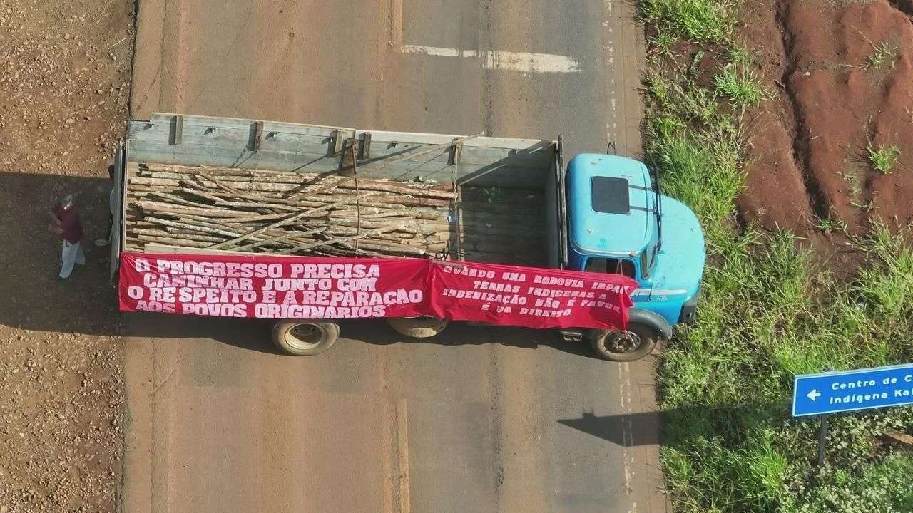 Lideranças indígenas realizam nesta terça-feira (7) um bloqueio na PR-281, em frente à sede da Te...
