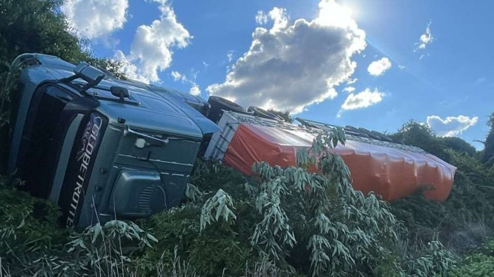 Acidente com tombamento ocorreu na tarde de quarta-feira (26) na PRC-280, no Km 227+900, em Vitor...
