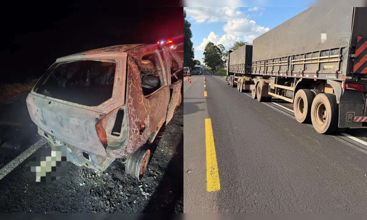 Segundo a Polícia Rodoviária Estadual (PRE), o sinistro aconteceu por volta das 14h, no km 266 da rodovia, envolvendo três veículos.